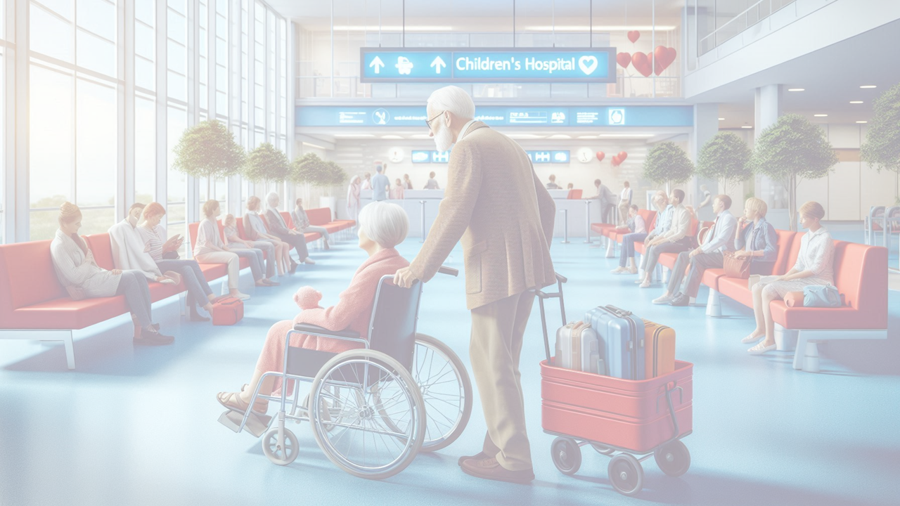 While sitting there, I watched as an elderly man, pushing his elderly wife in a wheel chair entered the lobby of the bustling hospital, not knowing where to go. The man, while pushing the wheel chair, was also pulling a little red wagon full of suitcases.